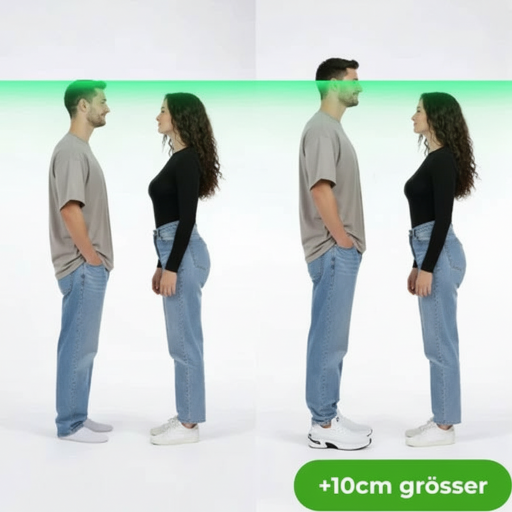 Was würden 10 cm mehr für dein Selbstbewusstsein bewirken? Mehr als du denkst. Unsere unsichtbare Erhöhung schenkt dir nicht nur zusätzliche Größe, sondern ein neues Auftreten. Du stehst aufrechter, wirkst präsenter und gehst mit natürlicher Sicherheit durch jeden Raum. Menschen reagieren darauf, ohne es erklären zu können. Du fühlst dich stärker, ruhiger und souveräner – vom ersten Schritt an. Kein auffälliges Design, kein Kompromiss beim Stil, nur ein klarer Vorteil, den man sieht und den du spürst. Es sind nur wenige Zentimeter, doch sie verändern, wie du dich wahrnimmst und wie andere dir begegnen. Entscheide dich für mehr Präsenz, mehr Selbstvertrauen und mehr Wirkung. Stärke, die man sieht. Selbstsicherheit, die bleibt.