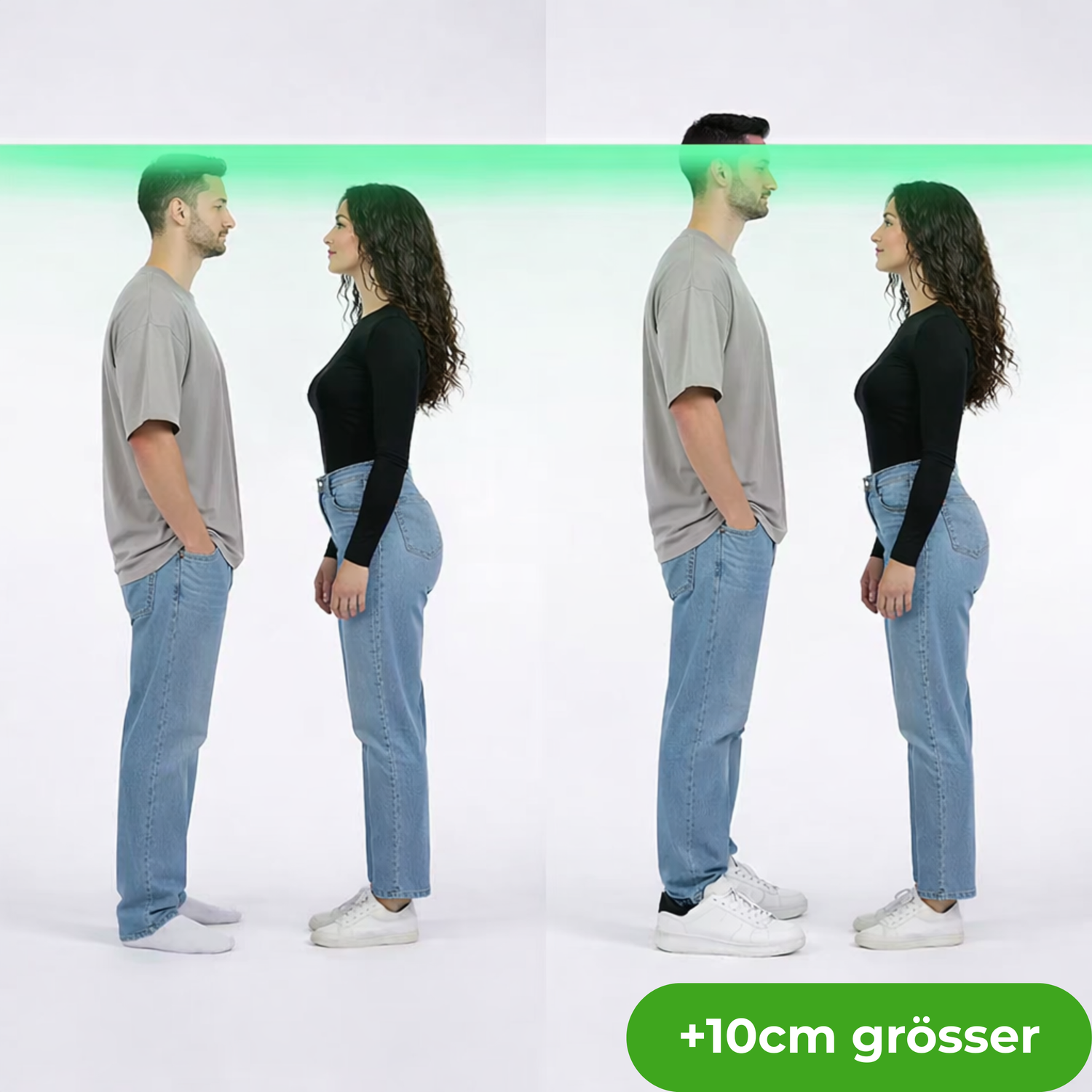 Was würden 10 cm mehr für dein Selbstbewusstsein bewirken? Mehr als du denkst. Unsere unsichtbare Erhöhung schenkt dir nicht nur zusätzliche Größe, sondern ein neues Auftreten. Du stehst aufrechter, wirkst präsenter und gehst mit natürlicher Sicherheit durch jeden Raum. Menschen reagieren darauf, ohne es erklären zu können. Du fühlst dich stärker, ruhiger und souveräner – vom ersten Schritt an. Kein auffälliges Design, kein Kompromiss beim Stil, nur ein klarer Vorteil, den man sieht und den du spürst. Es sind nur wenige Zentimeter, doch sie verändern, wie du dich wahrnimmst und wie andere dir begegnen. Entscheide dich für mehr Präsenz, mehr Selbstvertrauen und mehr Wirkung. Stärke, die man sieht. Selbstsicherheit, die bleibt.